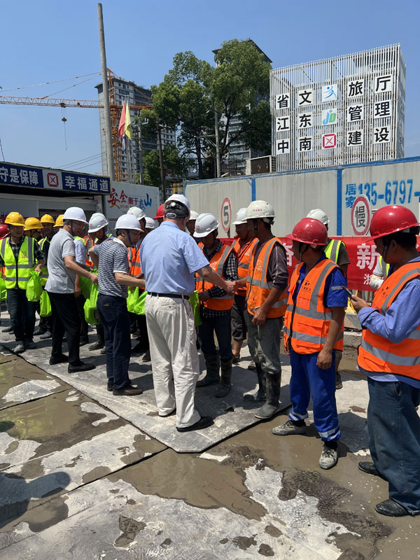2022年7月26日上午10点,浙江省文化和旅游厅褚子育厅长一行,在项目副总指挥罗永祥陪同下,来到我司监理的浙江省新时代文化艺术创研基地建设工地,检查指导工作并慰问了炎炎夏日仍然奋战施工一线的建设者,褚厅长对工程进度作了详细的了解,对安全文明施工作了重要指示,再三叮嘱奋战在一线的建筑工人一定要做好防暑降温工作,确保人身安全。项目施工单位中南建设公司副总陶东旭、我司董事长王德光同志参加了此次活动。