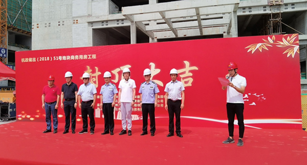 2021年7月13日上午10点由我司监理项目杭政储出【2018】51号地块商业商务用房项目“封顶”仪式在项目现场隆重举行。