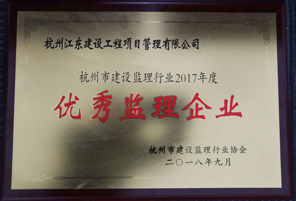 热列庆祝我公司荣誉“杭州市建设监理行业2017年度优秀监理企业”