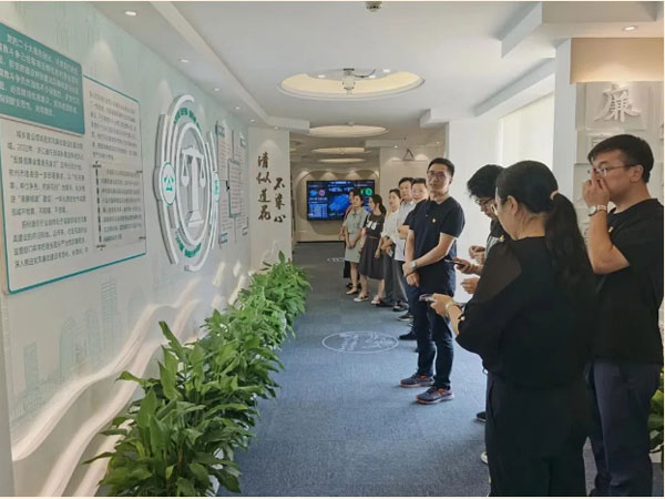 在党委书记姚胜忠带领下,一起参观学习行业廉政法规、警示案例剖析、造价行业人员“天秤码”展示、行业规范及优秀企业风采等5个主题板块。