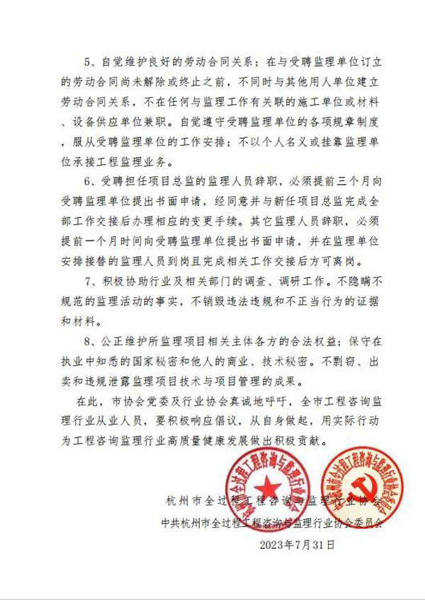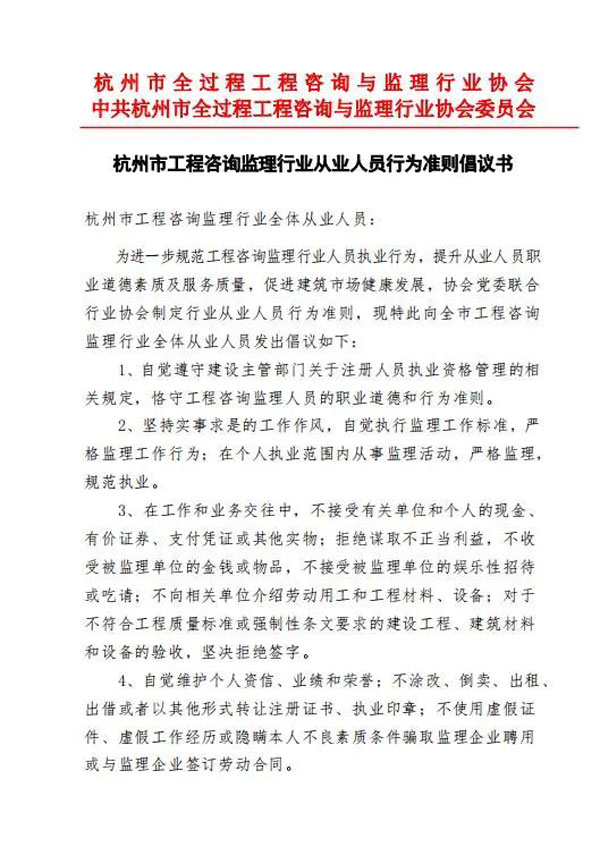 参观学习后,经过大家在廉政教育基地的讨论,由协会和协会党委联合发起《杭州市工程咨询监理行业从业人员行为准则倡议书》。