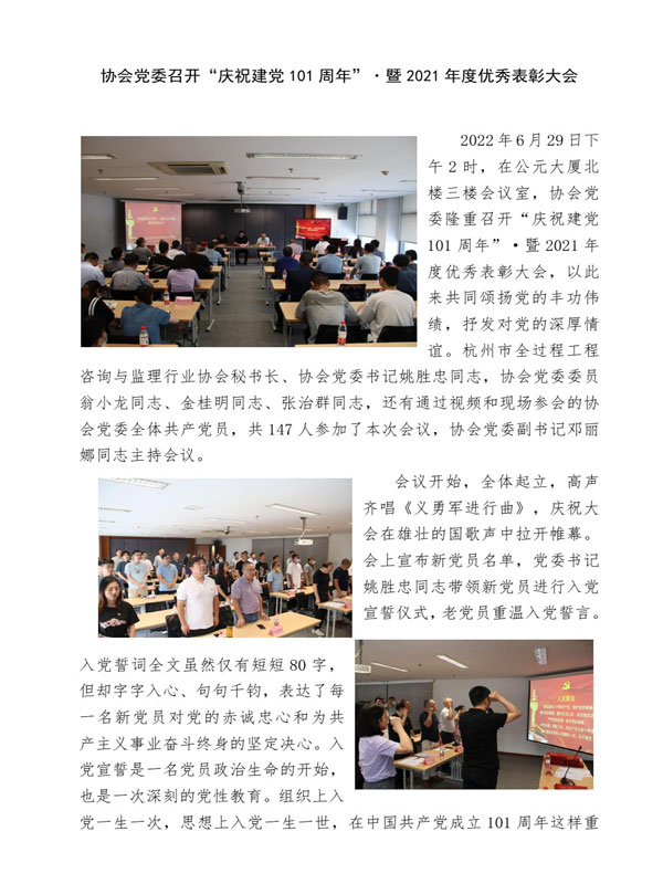 协会党委召开“庆祝建党101周年”·暨2021年度优秀表彰大会